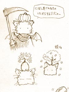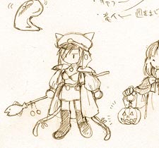 上のファーマーちゃんと同紙に描いてあったハロウィン版ネコゴブリン。